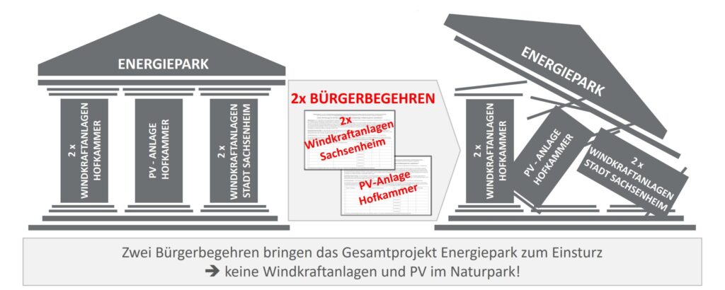 Der Gemeinderat hat am 27.05.2025 zwei Beschlüsse zum Energiepark „Alleenfeld“ gefasst. Um das Projekt zu stoppen, sind daher aus juristischen Gründen zwei Bürgerentscheide erforderlich – Windpark und Freiflächen PV-Anlage.
